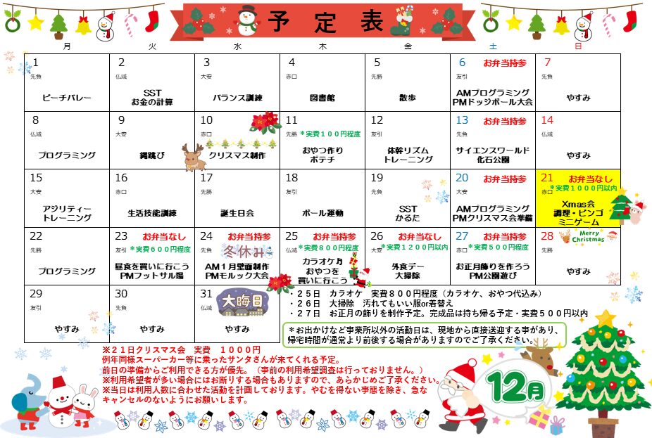 令和7年12月予定表