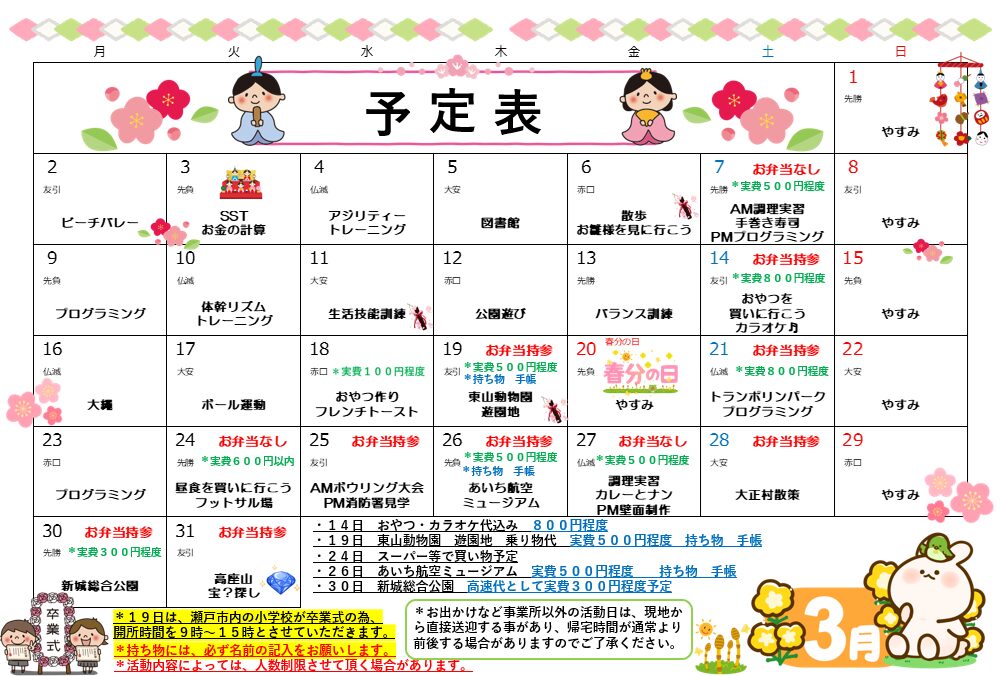 令和8年3月予定表