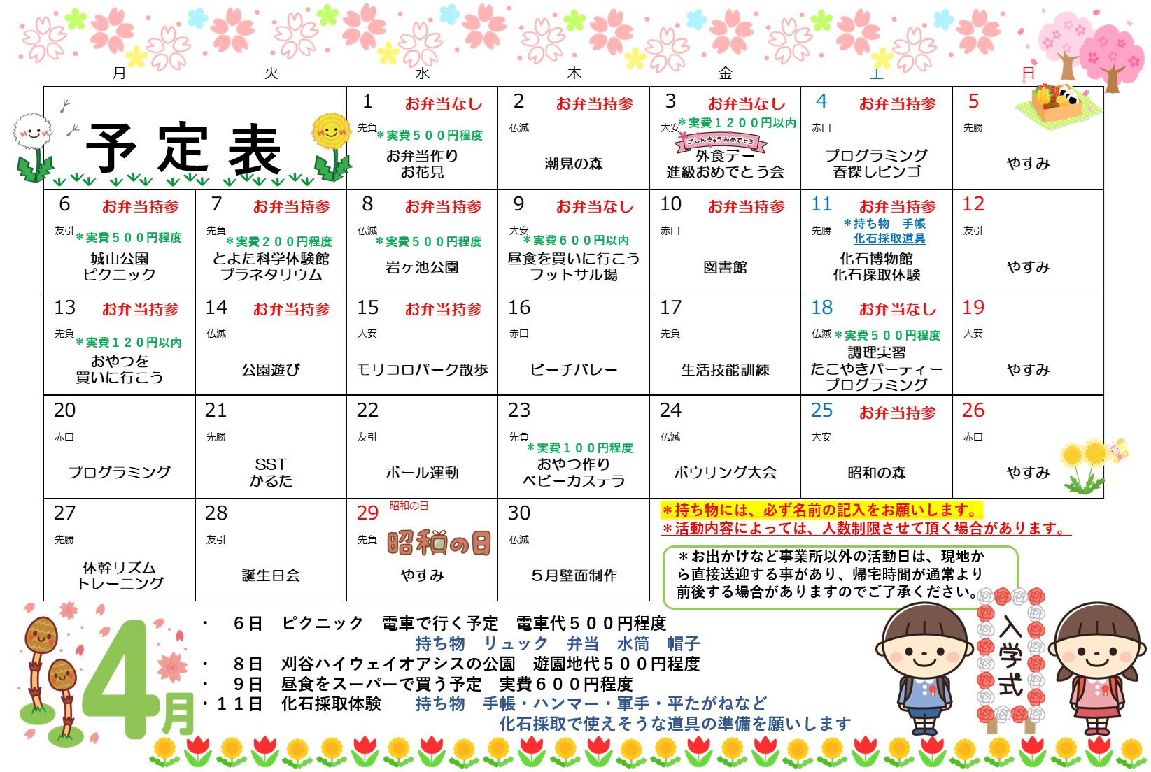 令和8年4月予定表